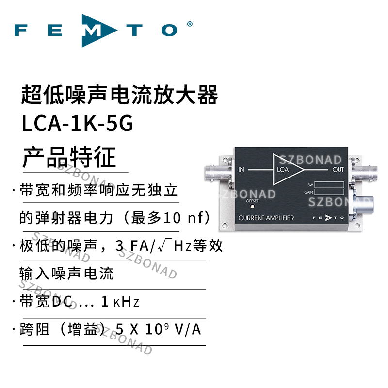 LCA-1K-5G是德國FEMTO公司生產的超低噪聲跨阻放大器?,適用于高精度電流信號檢測場景。